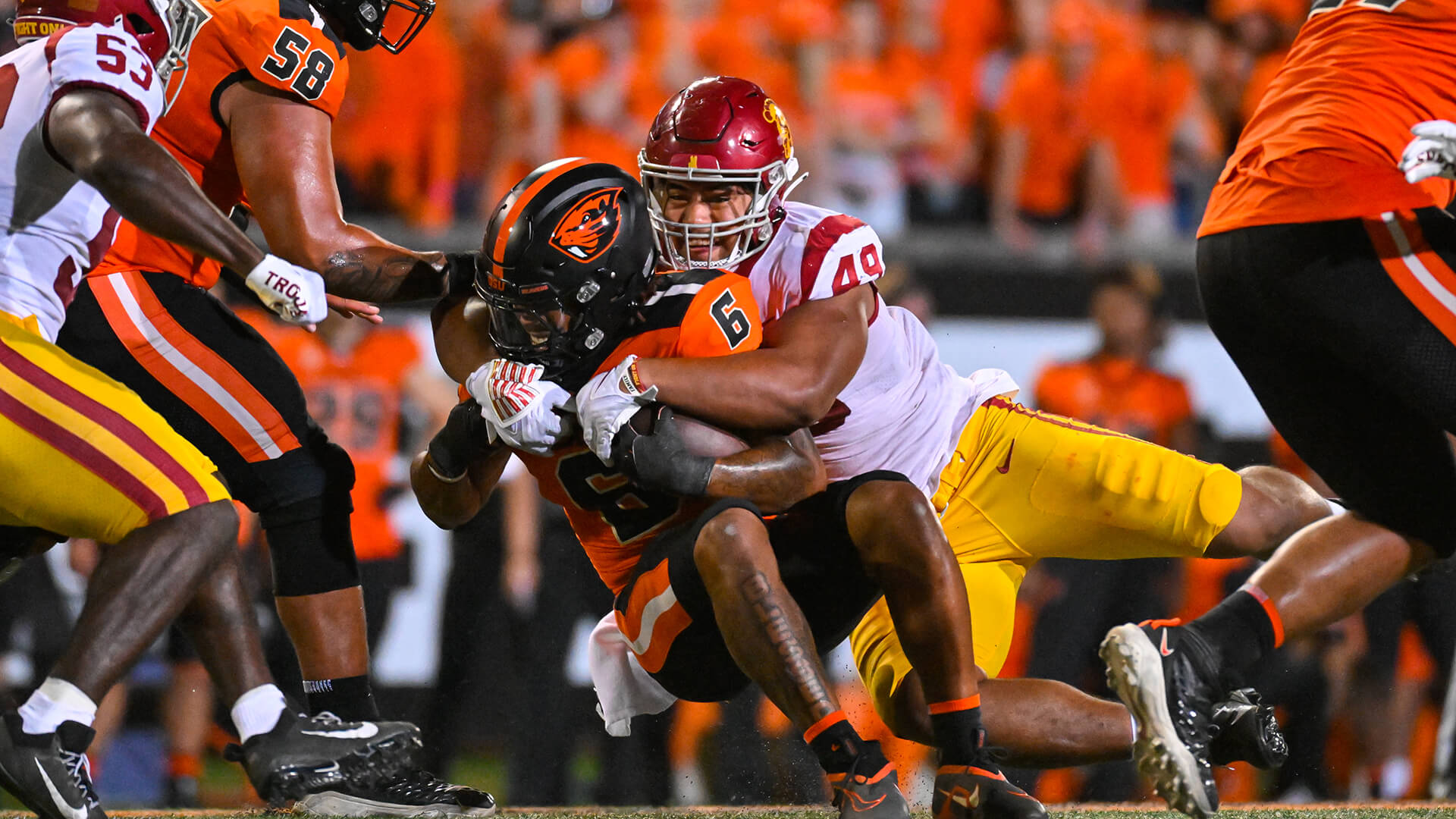 He had 5 tackles at Arizona, 3 tackles with a sack at Utah, 3 tackles against Washington State, 9 tackles (including 1.5 for losses, with a sack) at UCLA and 2 tackles against Oregon.
